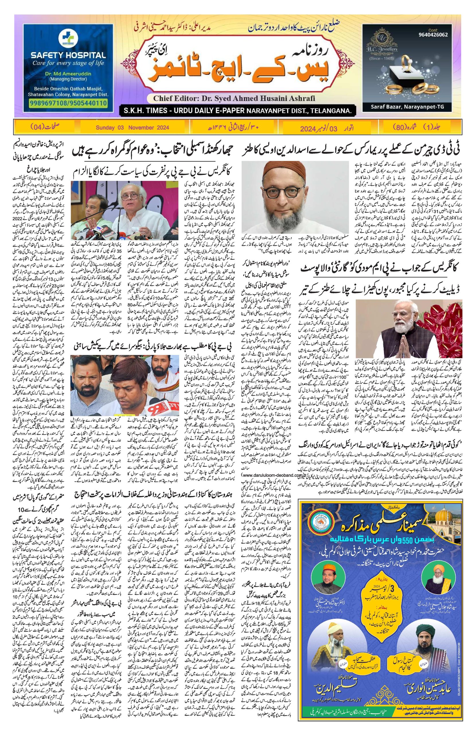 ایس کے ایچ ٹائمز – اردو ڈیلی ای پیپر نارائن پیٹ