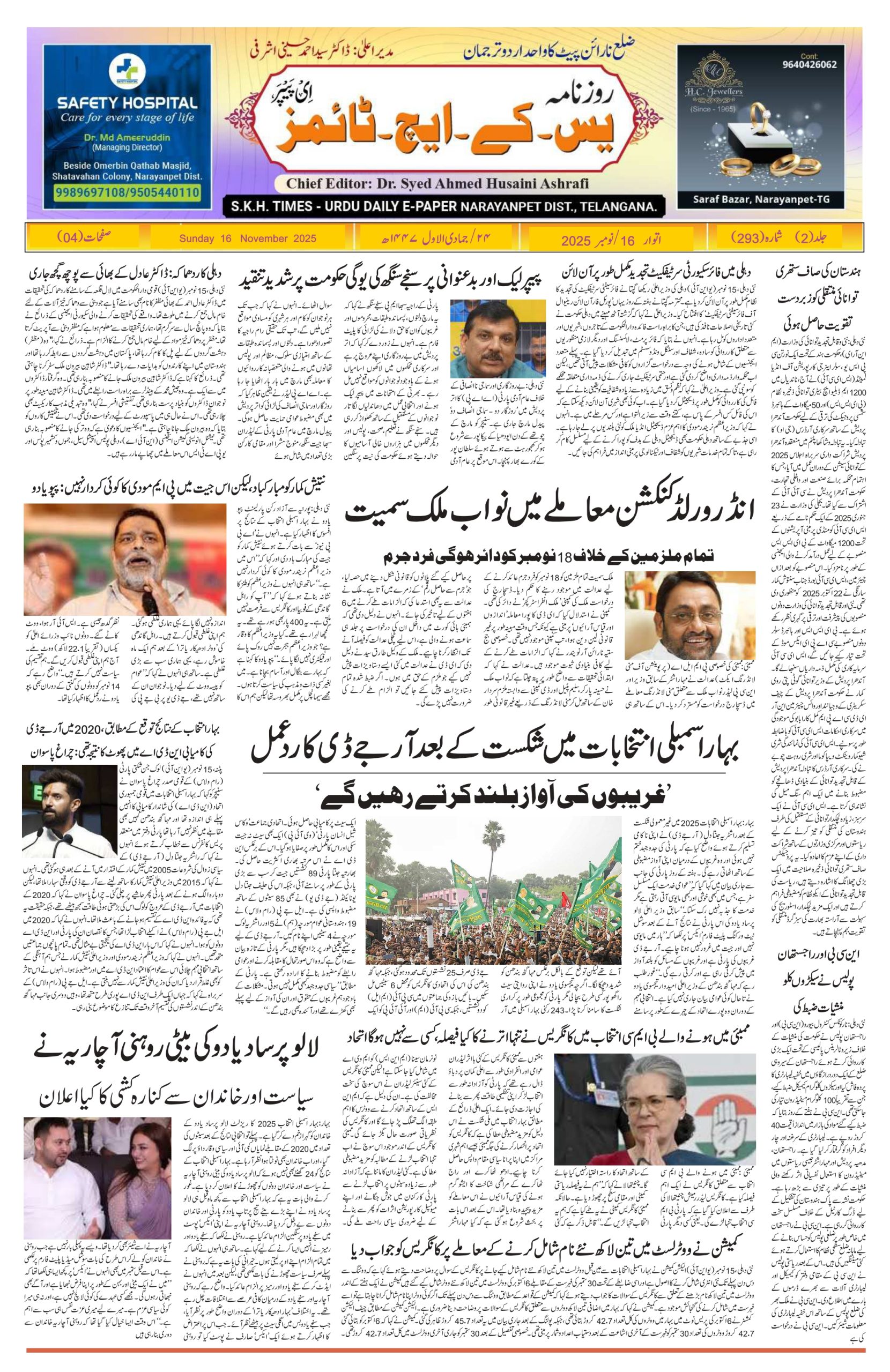 ایس کے ایچ ٹائمز – اردو ڈیلی ای پیپر نارائن پیٹ